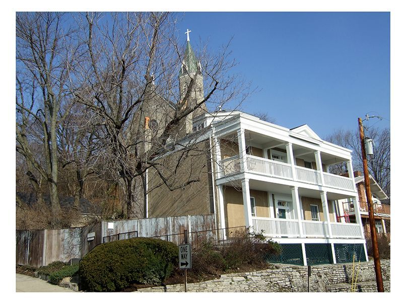 Sometime soon after November 1848, John Lowden, built this home at the corner of today’s Hill and St. Gregory Streets. Lowden was a prominent stonemason and builder and is believed to have been involved in operating the stone quarries on Mount Adams coursing down the Hill from Louden Street, thought to be named for Lowden even though the spelling is different. The home has been occupied since 1977 by Mary Baskett and is believed by many to be the oldest home on Mount Adams. Immaculata Church is seen in the background.